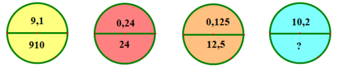 Ta có: `9,1 × 100 = 910`