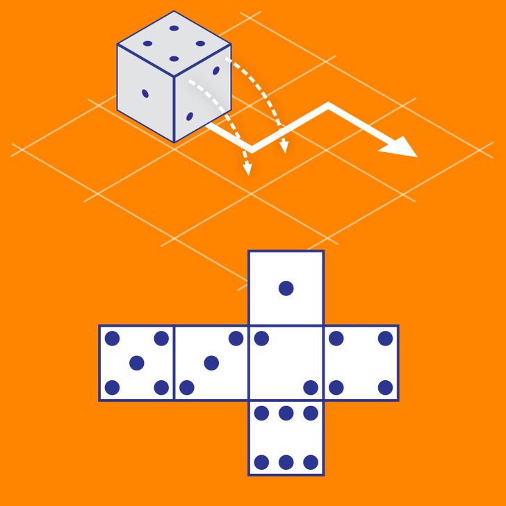 Nếu xúc xắc di chuyển như mũi tên trong hình vẽ, tại vị trí cuối cùng, mặt trên xúc xắc có mấy chấm?