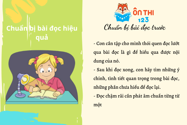 Con cần tập cho mình thói quen đọc lướt qua bài đọc là gì để hiểu qua được nội dung của nó. Sau khi đọc xong, con hãy tìm những ý chính, tình tiết quan trọng trong bài đọc, những phần chưa hiểu để đọc lại.