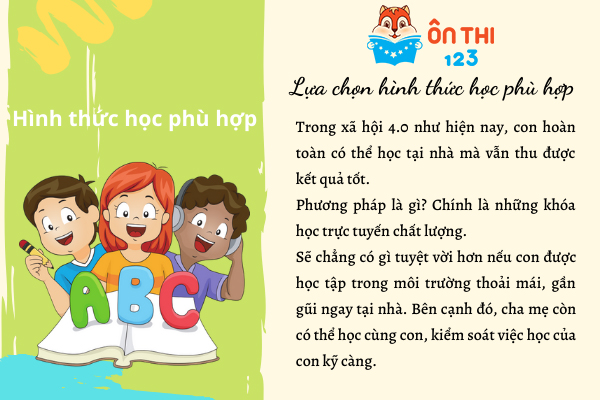 Đâu sẽ là hình thức học tiếng Anh hiệu quả nhất với con? Đây có lẽ là câu hỏi được rất nhiều phụ huynh quan tâm. Bởi chỉ cần lựa chọn hình thức học đúng, con sẽ gặt hái được nhiều trái ngọt trong học tập.