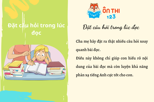 Cha mẹ có thể giúp con hoàn thành kỹ năng này bằng cách sau khi con đọc xong, cha mẹ hãy đặt ra thật nhiều câu hỏi xoay quanh bài đọc. Điều này không chỉ giúp con hiểu rõ nội dung của bài đọc mà còn luyện khả năng phản xạ tiếng Anh cực tốt cho con.