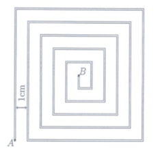 Một con kiến di chuyển trong một "mê cung" từ `A` đến `B` (theo đường gấp khúc như hình vẽ). Biết khoảng cách giữa `2` đường song song cạnh nhau bằng `1cm`. Hỏi con kiến đã di chuyển quãng đường dài bao nhiêu xăng-ti-mét?