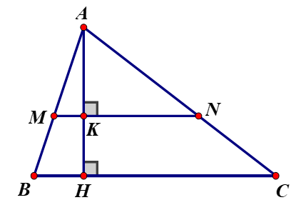Biết `MN////BC; (AM)/(MB)=3/2`. Biết diện tích tam giác `ABC` là `150` cm2.