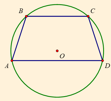 Cho hình thang `ABCD` có đáy lớn `AD`, đáy nhỏ `BC` nội tiếp đường tròn `(O)`. Hỏi `ABCD` là hình gì?