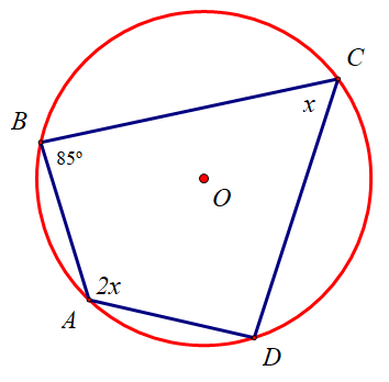 Cho tứ giác `ABCD` có số đo các góc `A,B,C,D` lần lượt như sau. Trường hợp nào thì tứ giác `ABCD` có thể là tứ giác nội tiếp
