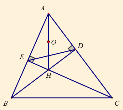Xét `△AEH` vuông tại `E`: tâm đường tròn ngoại tiếp `△AEH` là trung điểm `O` của `AH`