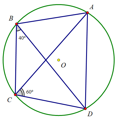 Do tứ giác `ABCD` nội tiếp đường tròn tâm `(O)` nên ta có:
