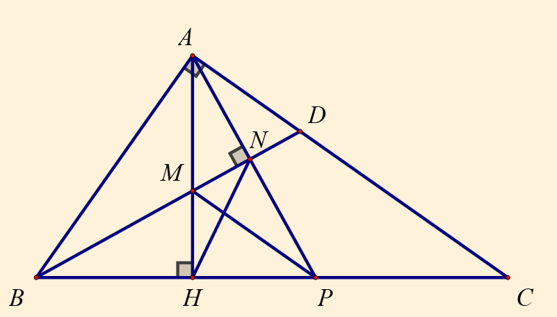 Cho tam giác `ABC` vuông tại `A`, đường cao `AH`. Trên `AC` lấy điểm `D,BD` cắt `AH` tại `M`. Qua `A` vẽ đường thẳng vuông góc với `BD` tại `N` và cắt `BC` tại `P`. Khi đó, `hat(MNH)`bằng góc nào sau đây?