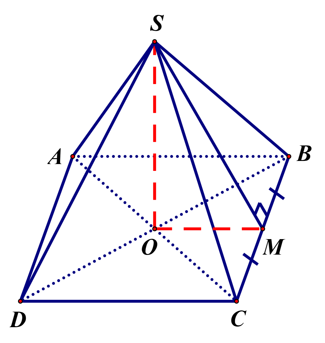 Xét `triangleSOM` vuông tại `O`. Áp dụng định lí Py-ta-go ta có: