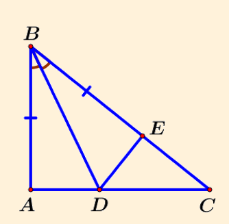 `hat(ABD)=hat(EBD)` (`BD` là tia phân giác)