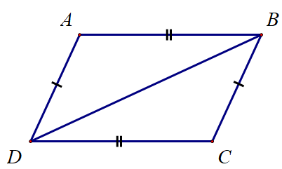 Cho hình vẽ bên: biết `AB = CD, AD = BC`