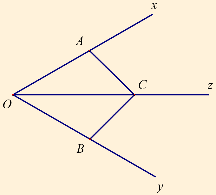 `hat(AOC)=hat(BOC)` (vì `Oz` là tia phân giác `hat(xOy)`)