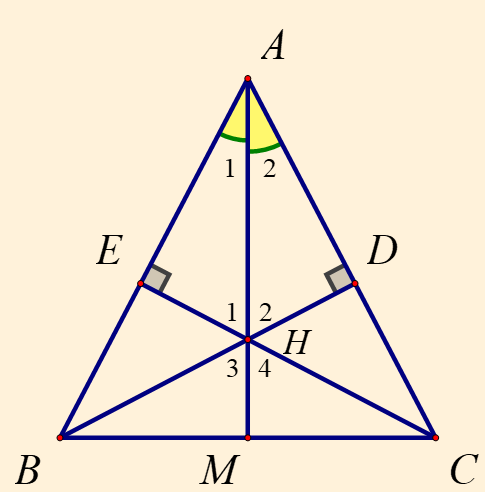 `2` đường cao `BD` và `EC` cắt nhau tại `H`