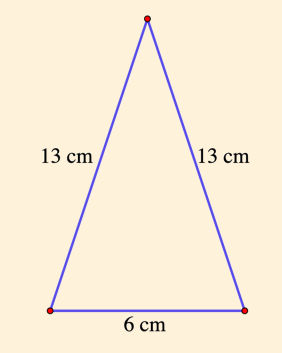 `=>` bộ ba cạnh là `6cm ; 13cm ; 13cm`