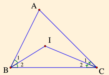 Cho tam giác `ABC` có `AB < AC`. Tia phân giác của các góc `B` và `C` cắt nhau tại `I`.