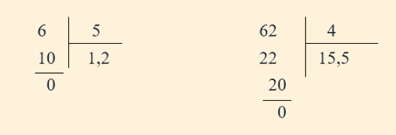 Để chia tiếp ta viết dấu phẩy vào bên phải số `6` và viết thêm chữ số `0` vào bên phải `2` ta được `20`