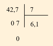 Vậy `42,7 : 7 = 6,1`