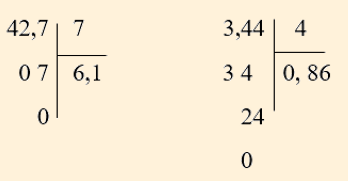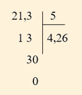 Vậy: `42,7 : 7 = 6,1; 3,44 : 4 = 0,86; 21,3 : 5 = 4,26`