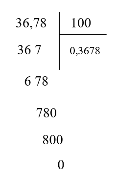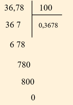 Bạn Na thực hiện phép tính `36`,`78 : 100` như sau