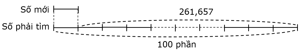 Cho một số thập phân, dời dấu phẩy của số đó sang bên trái hai chữ số ta được số thứ hai. Lấy số ban đầu trừ đi số thứ hai ta được hiệu bằng 261,657. Hãy tìm số thập phân ban đầu.