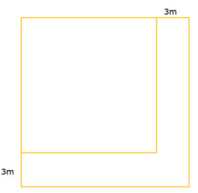 Mẹ Nga có một mảnh vườn để trồng rau dạng hình vuông có cạnh bằng `15` `m`. Mẹ để một phần của mảnh vườn làm lối đi rộng `3` `m` (hình vẽ). Tính diện tích phần vườn còn lại để trồng rau?