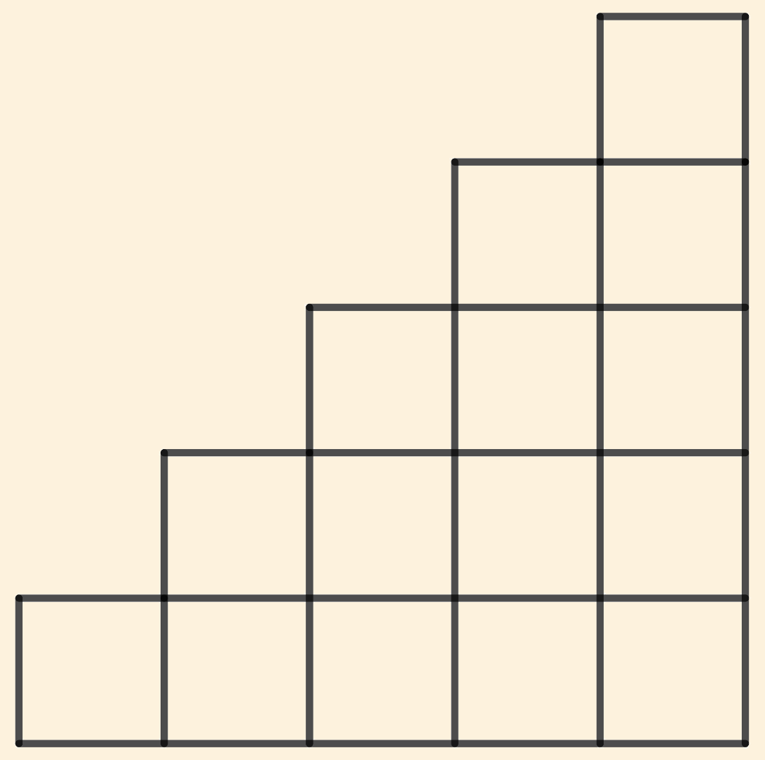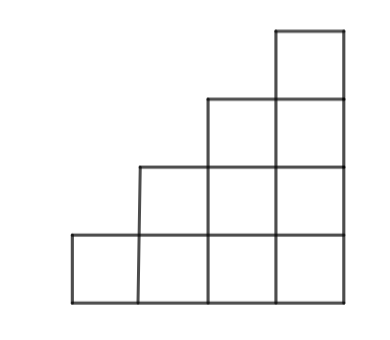 Một chiếc bậc thang mô hình được xếp bởi các hình vuông như hình bên (hàng `1` có `1` hình vuông, hàng `2` có `2` hình vuông, hàng `3` có `3` hình vuông,...)