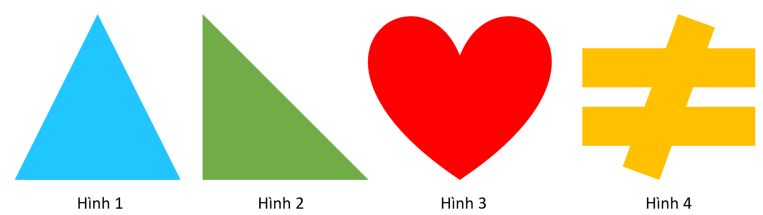 Trong các hình sau, hình nào không có trục đối xứng (mỗi hình là một từ)?
