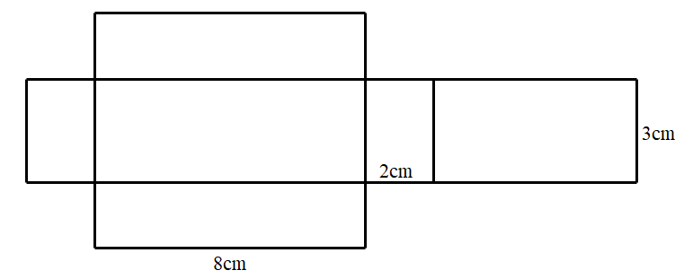 Chiều dài là `8cm`, chiều rộng là `3cm`, chiều cao `2cm`