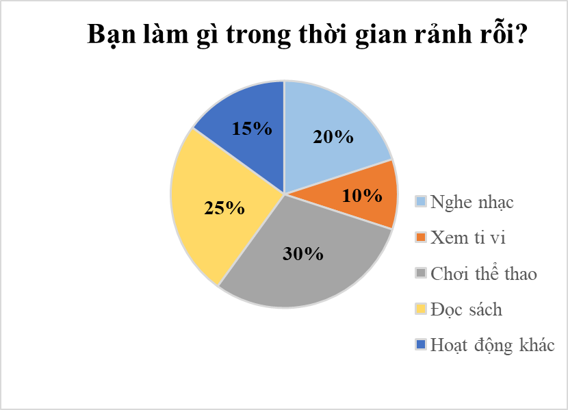 Từ biểu đồ trên ta thấy có `25%` số học sinh thích đọc sách trong thời gian rảnh rỗi