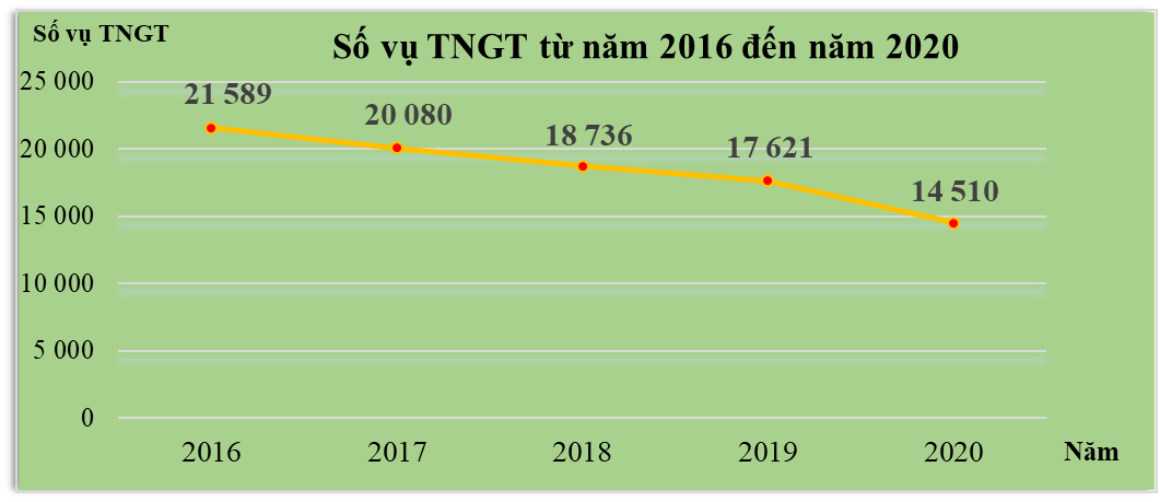Từ biểu đồ ta thấy số vụ tai nạn giao thông ở Việt Nam giảm dần qua các năm từ năm 2016 đến năm 2020.