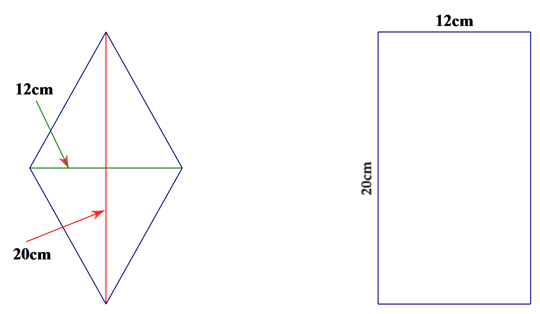 Diện tích hình thoi `<` Diện tích hình chữ nhật.