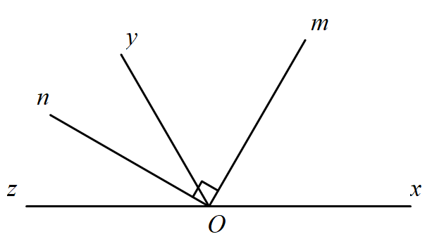 Cho hình vẽ biết `hat(mOn)=90^o` và `Om;On` lần lượt là tia phân giác của góc `hat(xOy)` và `hat(yOz)`.
