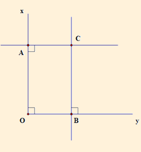 Cho `hat(xOy)=90^o`. Trên `Ox` lấy `A` sao cho `OA=4cm`, trên `Oy` lấy `B` sao cho `OB=2,5cm`. Qua `A` kẻ đường thẳng vuông góc với `Ox`. Qua `B` kẻ đường thẳng vuông góc với `Oy`. Hai đường thẳng đó cắt nhau ở `C`.