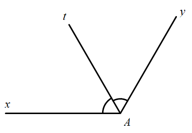 Cho hình vẽ, biết `At` là tia phân giác của góc `hat(xAy)`. Chọn kết luận đúng