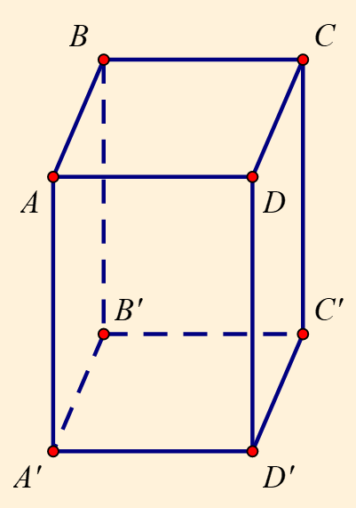 Hãy chọn câu sai. Hình hộp chữ nhật `ABCD. A’B’C’D’` có
