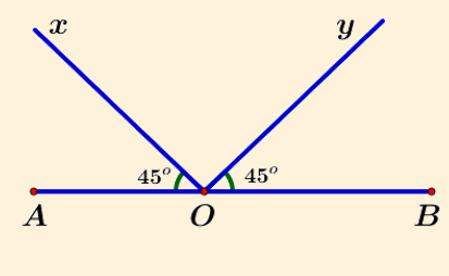 Ta có: `hat(AOx)=hat(BOy)=45^o` tuy nhiên hai góc `hat(AOx)` và `hat(BOy)` không phải là hai góc đối đỉnh