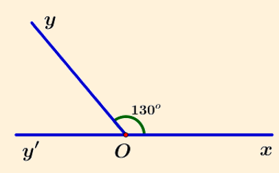 Cho biết hai góc `hat(xOy);hat(yOy')` là hai góc kề bù, `hat(xOy)=130^o`.