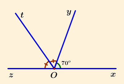 Vẽ hai góc kề bù `hat(xOy)` và `hat(yOz)` biết `hat(xOy)=70^o`. Vẽ tia `Ot` là tia phân giác của `hat(yOz)`.
