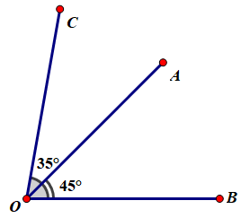 và `hat(BOA)=45^o,hat(AOC)=35^o .`