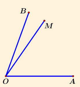 Vì tia `OM` nằm trong góc `hat(AOB)`