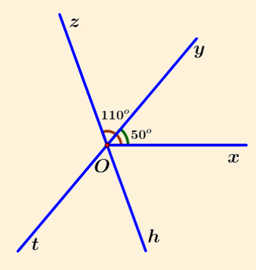 Trên cùng một nửa mặt phẳng bờ chứa tia `Ox`, vẽ các tia `Oy, Oz` sao cho `hat(xOy)=50^o;hat(xOz)=110^o`. Gọi `Ot` là tia đối của tia `Oy, Oh` là tia đối của tia `Oz`. Tính số đo góc `hat(tOh)`