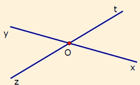 Vì `xy` cắt `zt` tại `O` nên `hat(xOy),hat(zOt)` là hai góc bẹt