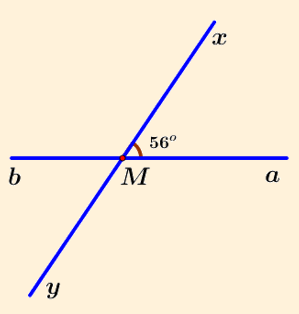 Vẽ hai đường thẳng `ab` và `xy` cắt nhau tại `M`. Biết `hat(aMx)=56^o`.