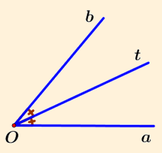 Tia `Ot` là tia phân giác của `hat(aOb)`