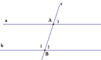 Vì `a////b` nên ta được `hat A_1=hatB_2` (hai góc đồng vị)