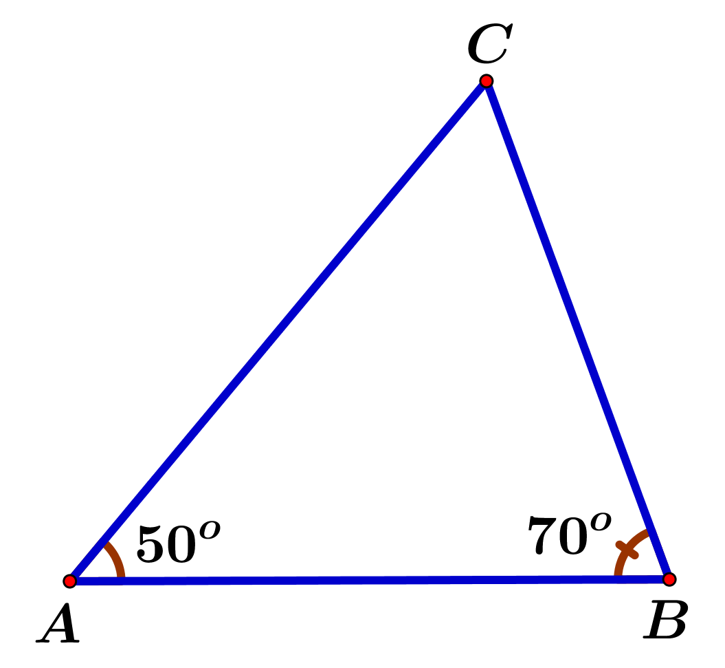 `=>\hat(C)=180^o-(\hat(A)+\hat(B))=180^o-50^o-70^o=60^o`