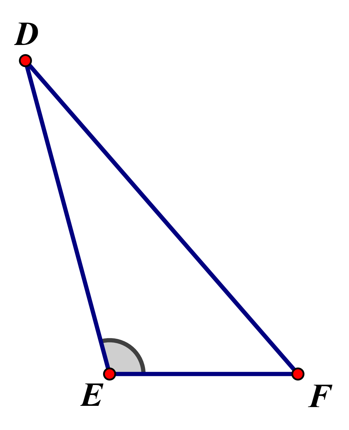Xét `triangleDEF` có `\hat(E)>90^o=>\hat(E)` là góc tù