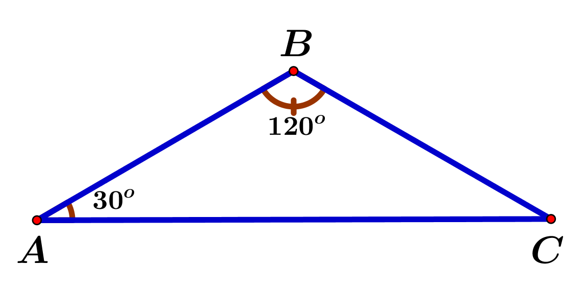 Cho tam giác `ABC` có `\hat(A)=30^o;\hat(B)=120^o`