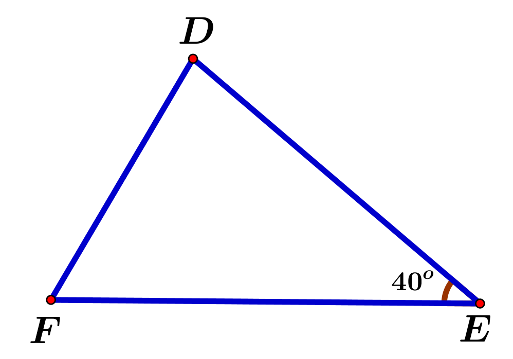 `=>\hat(F)=180^o-(\hat(D)+\hat(E))=180^o-(80^o +40^o)=60^o`