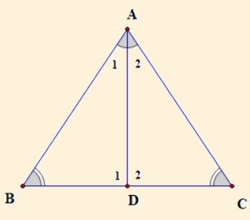 `hat A_1=hat A_2` (`AD` là tia phân giác `hat(BAC)`)